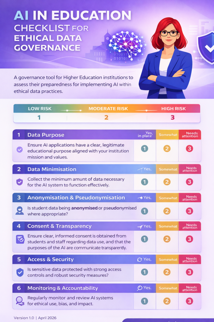 Artificial intelligence is already part of everyday professional life in higher and further education. Staff are using it to draft communications, summarise documents, analyse data, and support decisions. Most of the time, that happens without any formal review of whether it is appropriate.
